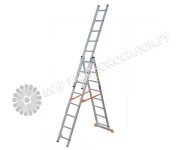 Рабочая высота, м: 6.96 Высота лестницы, м: 5.69 Количество ступеней: 3х9 Материал: алюминий Вес, кг: 12.9