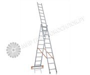 Рабочая высота, м: 10.50 Высота лестницы, м: 9.63 Количество ступеней: 3х14 Материал: алюминий Вес, кг: 37