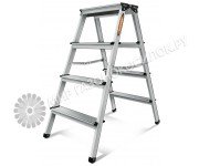 Тип: двусторонняя Рабочая высота, м: 2.21 Высота лестницы, м: 0.88 Количество ступеней: 2х4 Материал: алюминий Максимальная нагрузка, кг: 150 Вес, кг: 3.9